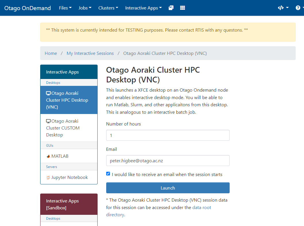 Interactive Desktop (that includes access to Matlab, Jupyter Notebook, shell and research file systems)